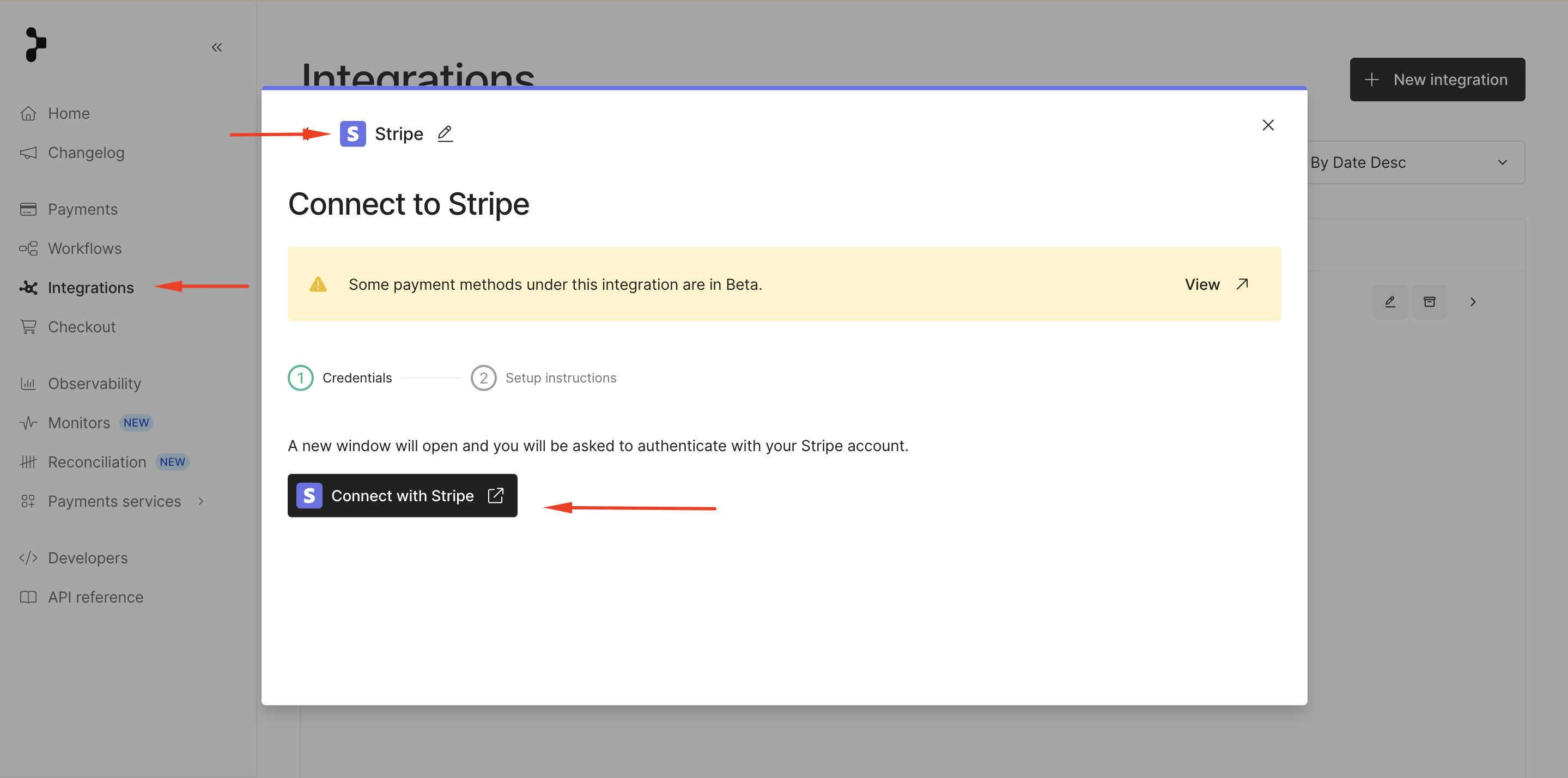 Go to https://dashboard.primer.io/integrations